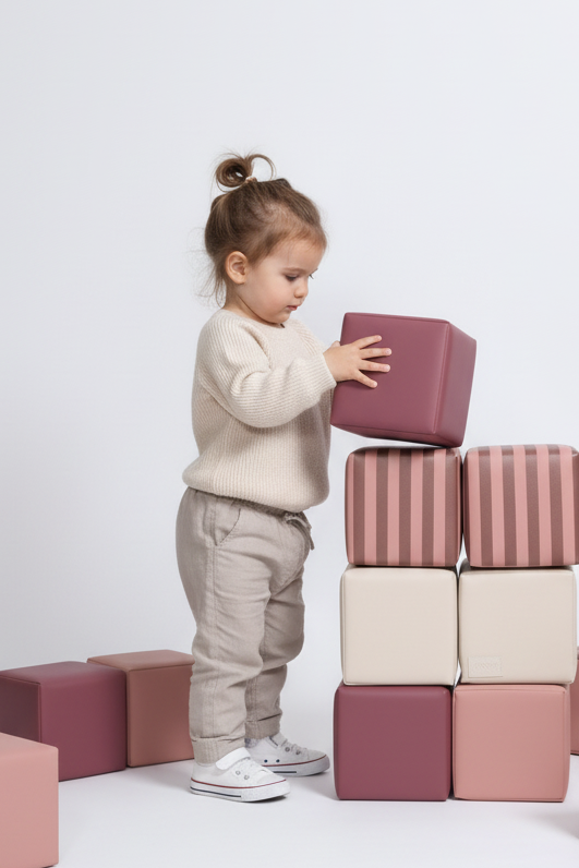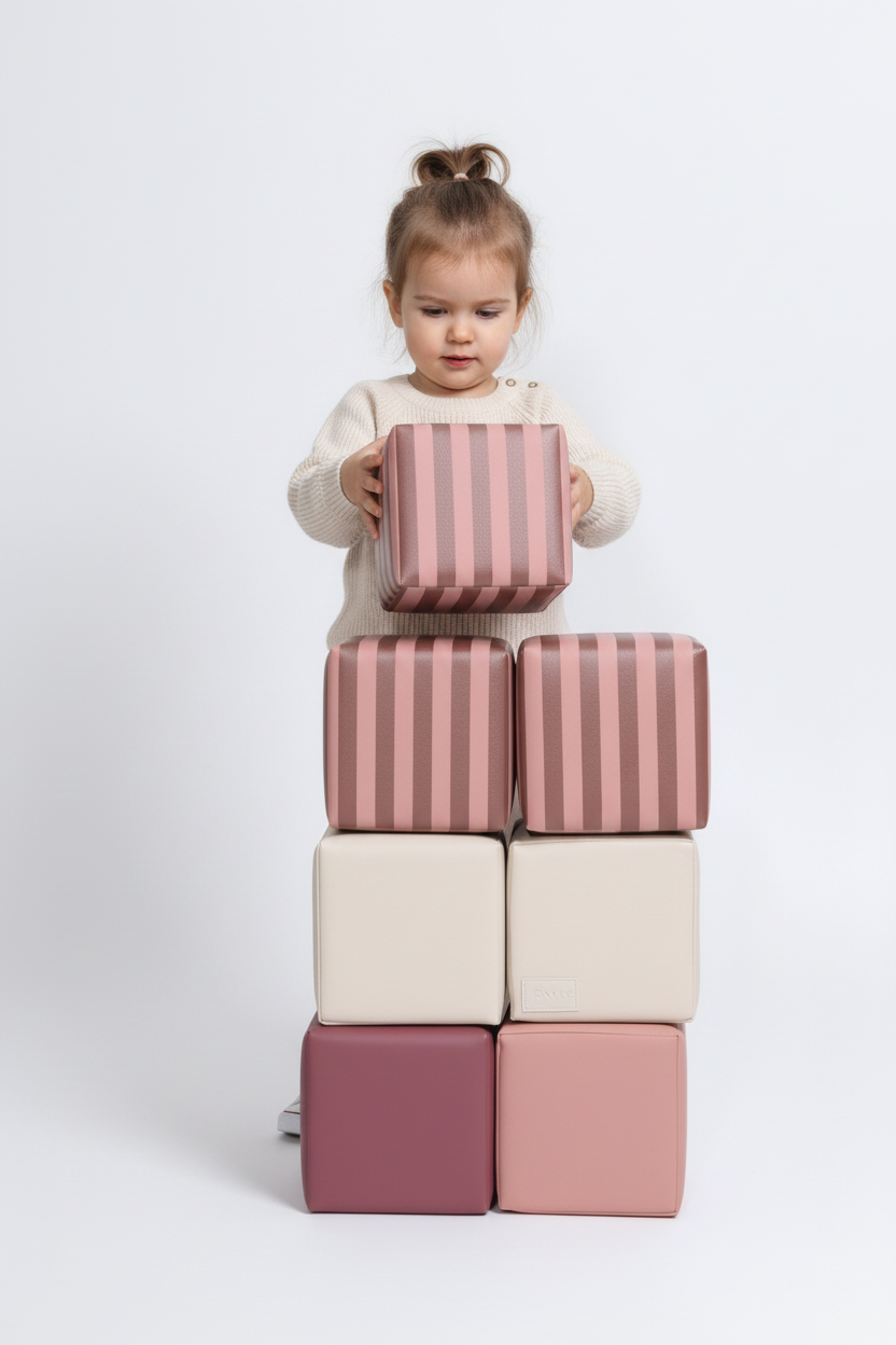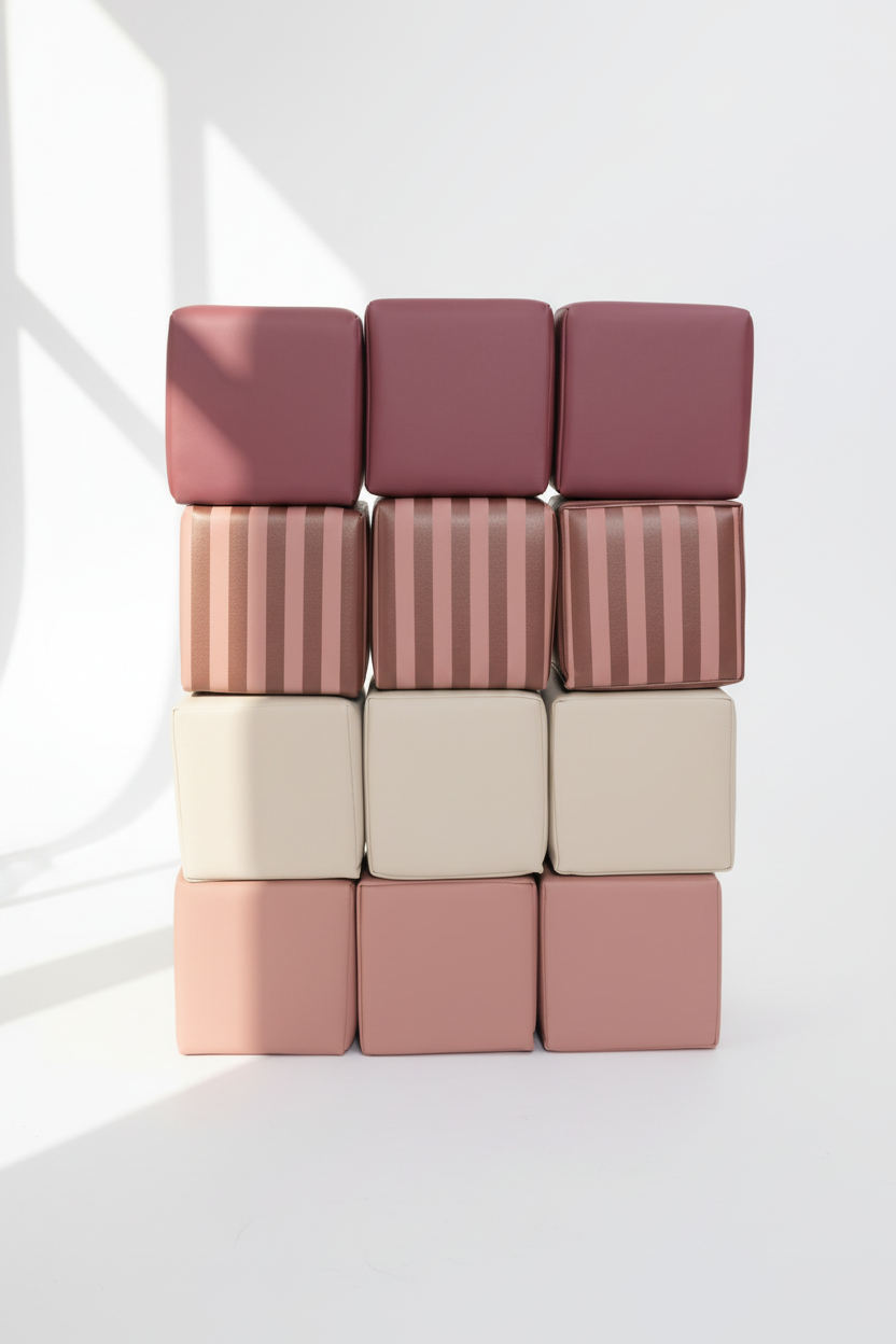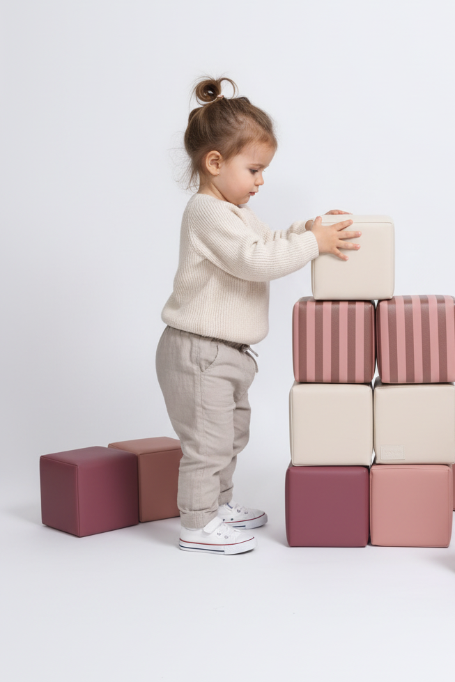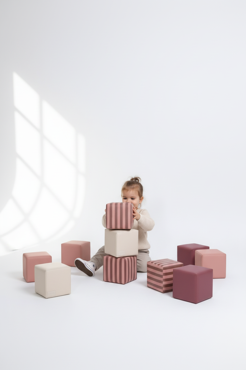 De blokken zijn gemaakt van hoogwaardig EPE-schuim en bekleed met premium vegan leer. Ze voelen zacht aan, zijn bestand tegen dagelijks gebruik en eenvoudig schoon te maken met een vochtige doek. De materialen zijn niet-toxisch, vrij van schadelijke stoffen en voldoen aan de hoogste veiligheidsnormen voor kinderspeelgoed.