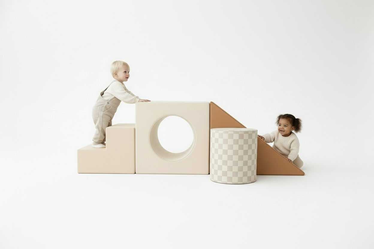 Door te klimmen, kruipen, glijden en stapelen versterken kinderen hun evenwicht, coördinatie, spierkracht en ruimtelijk inzicht.